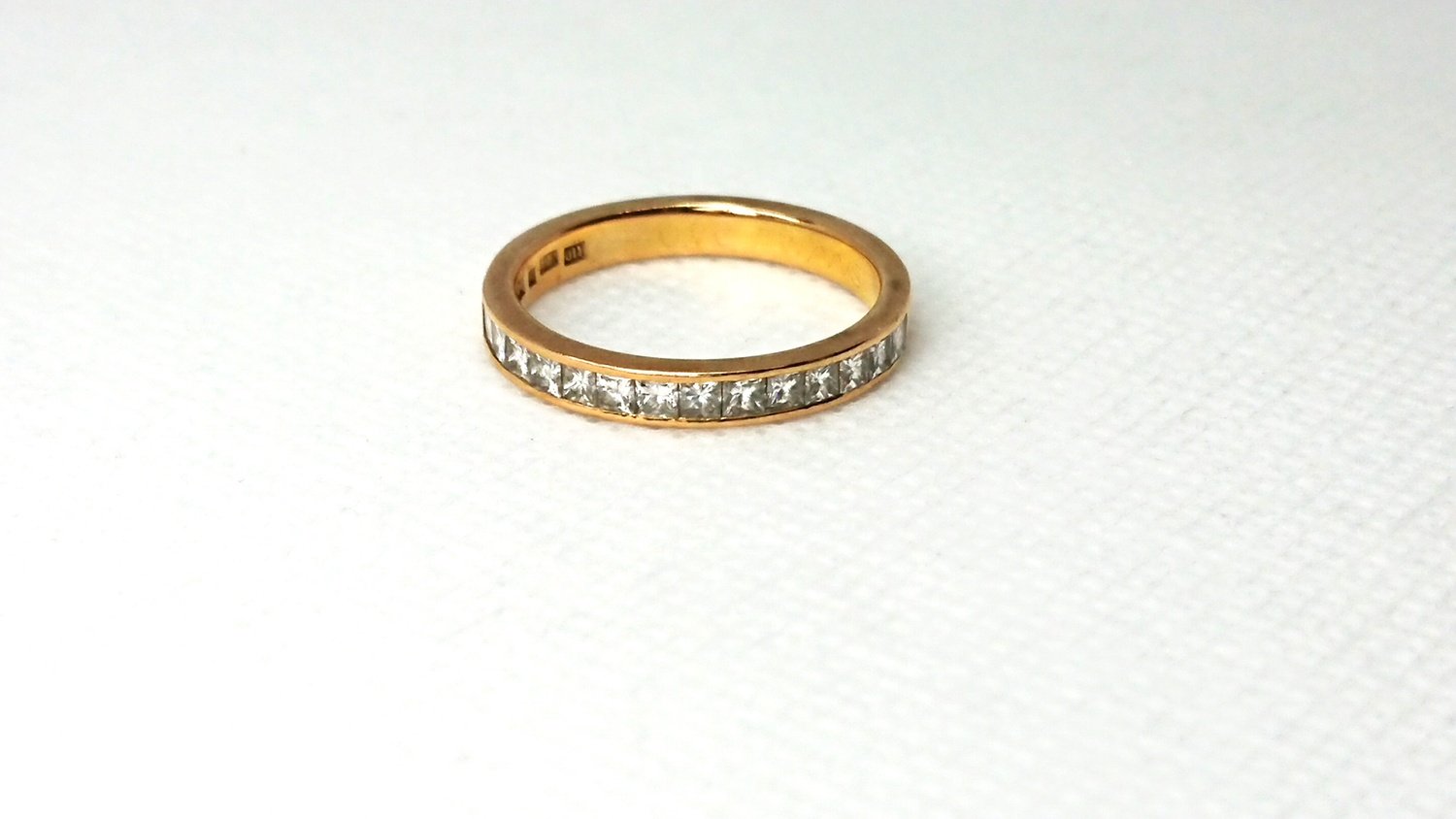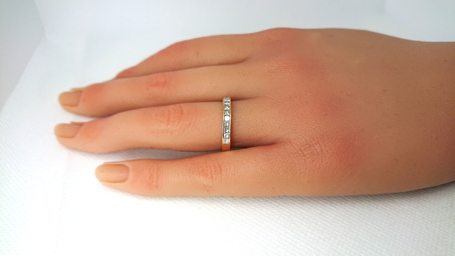 Vacker vintage diamant ring i äkta 18K guld med 14 Prinsesslipade diamanter om totalt 0,70ct, vacker design, i mycket bra skick, svenskt guld från Arthur Guld Tillverkning AB.