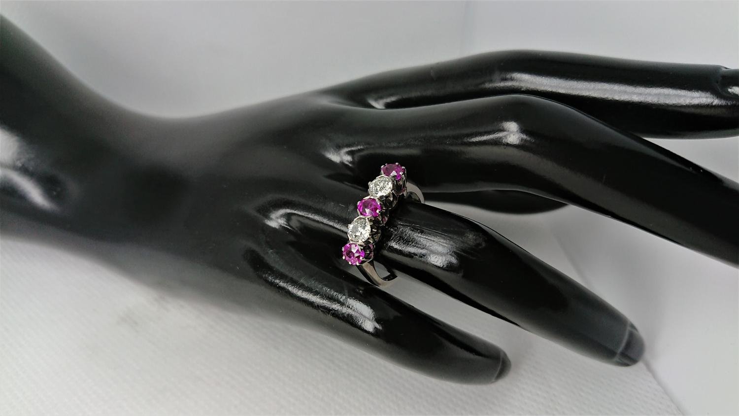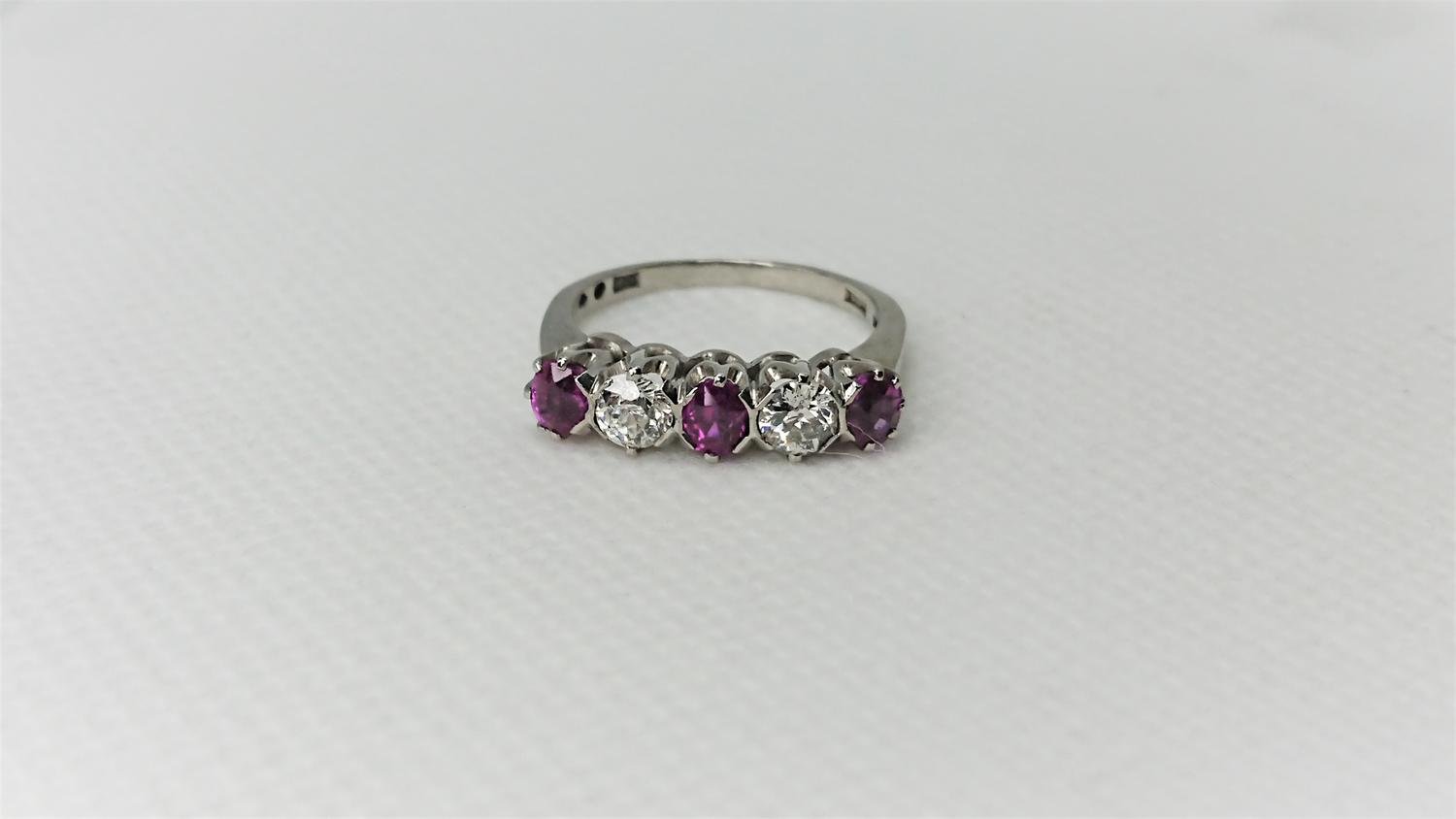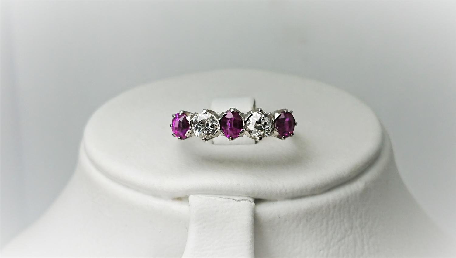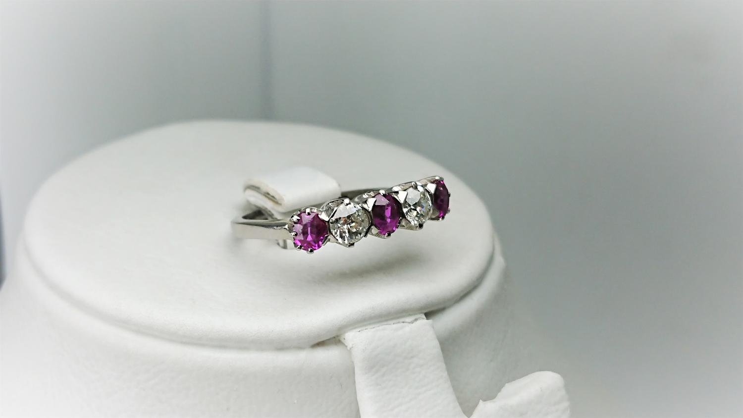 Vacker vintage ring i äkta 18K vitguld med 2 diamanter om ca totalt 1.02ct och 3 rubiner om ca totalt 1,5ct, i mycket bra skick som ny, otroligt vacker klassisk och tidlös design, kvalitet smycke, svensk guld från Carl Hoff AB år 1966.
