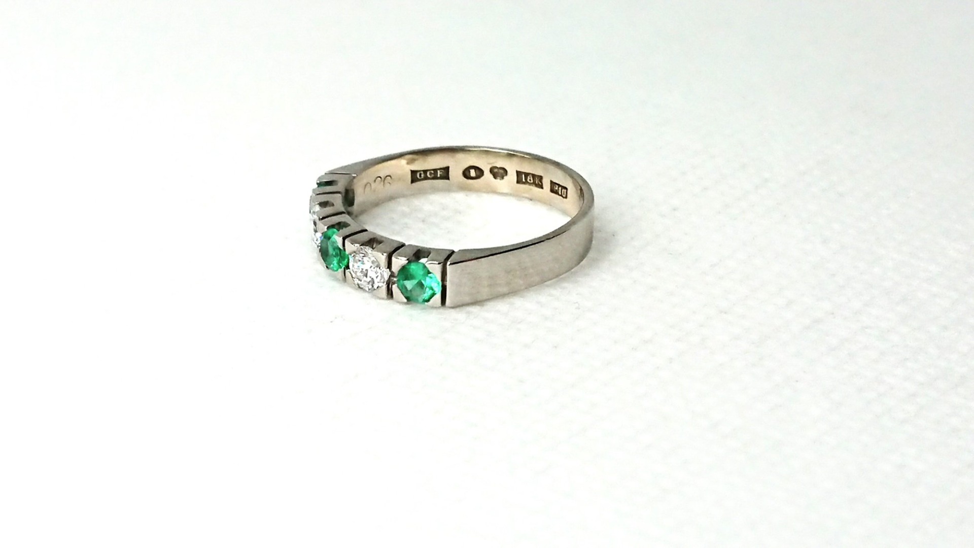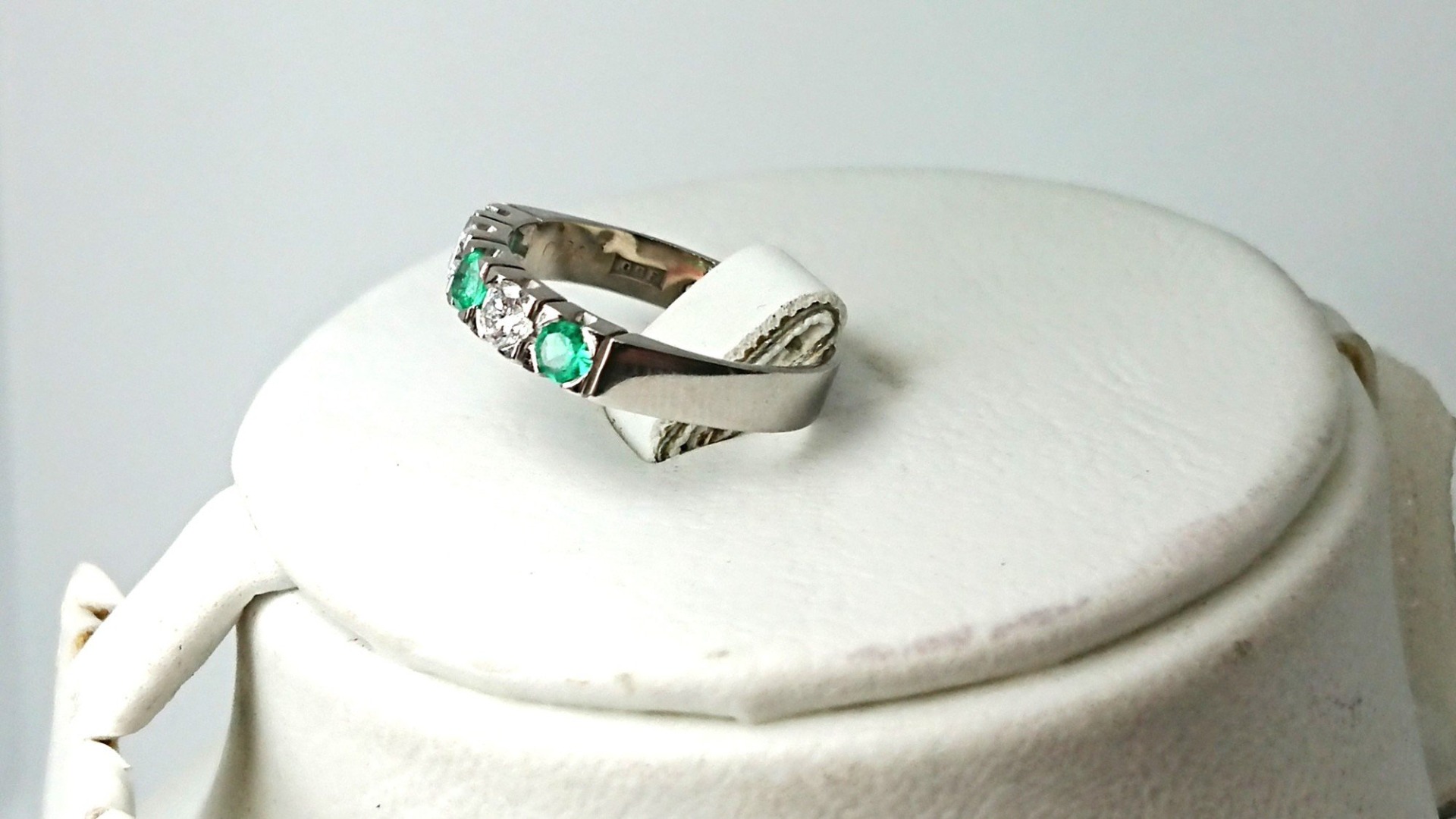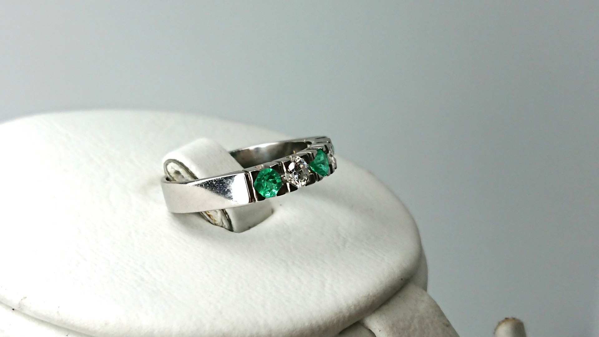 Otroligt vacker vintage ring i äkta 18K vitguld med 3 smaragd stenar och 2 diamanter om totalt 0,26ct diamant, vacker fattning, spår efter storlekändring, i mycket bra skick, vacker vintage klassisk design, svenskt guld från Christian Fredriksson Guldsmed.