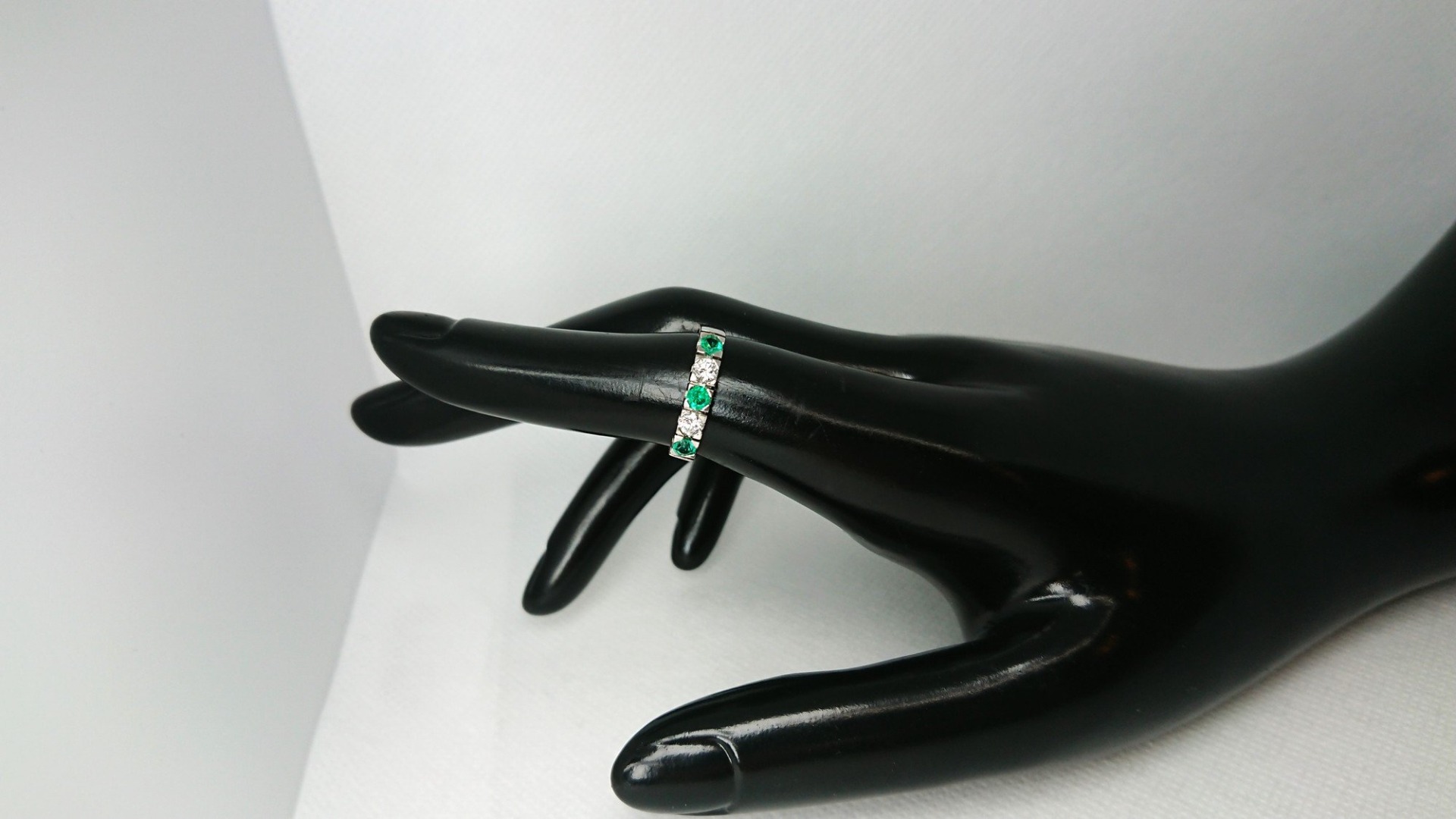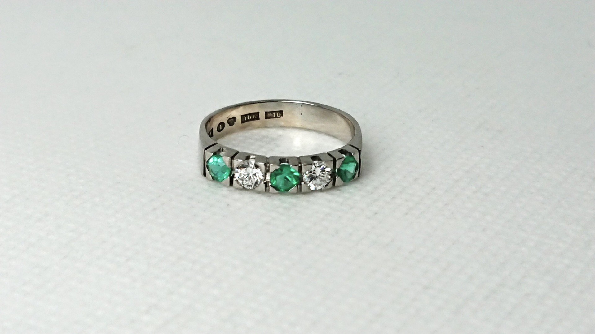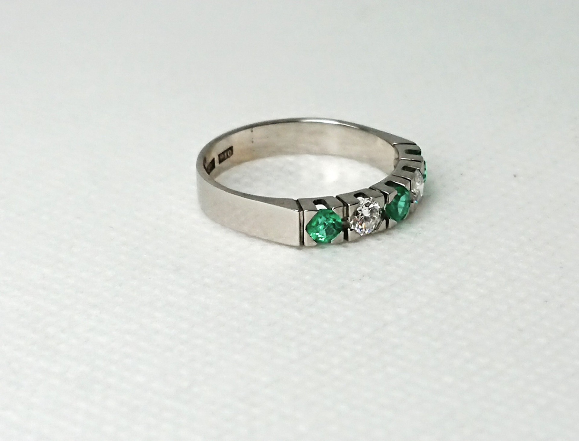 Otroligt vacker vintage ring i äkta 18K vitguld med 3 smaragd stenar och 2 diamanter om totalt 0,26ct diamant, vacker fattning, spår efter storlekändring, i mycket bra skick, vacker vintage klassisk design, svenskt guld från Christian Fredriksson Guldsmed.