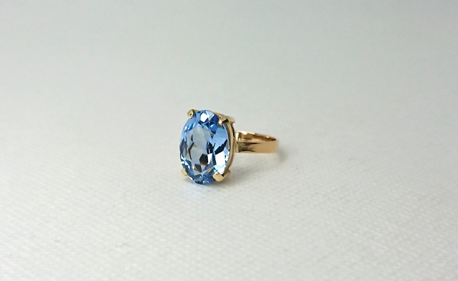 Otroligt vacker vintage ring i äkta 18k guld med stor och vacker akvamarin sten 16x12mm, i mycket bra skick som ny, vacker och tidlös design.