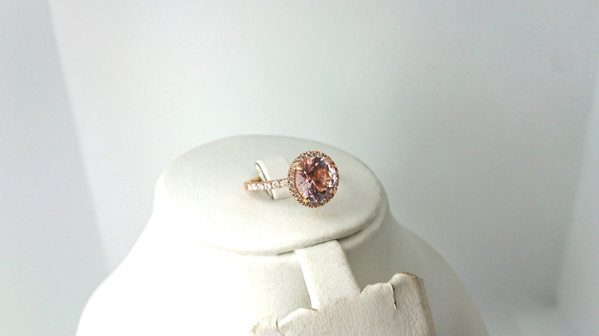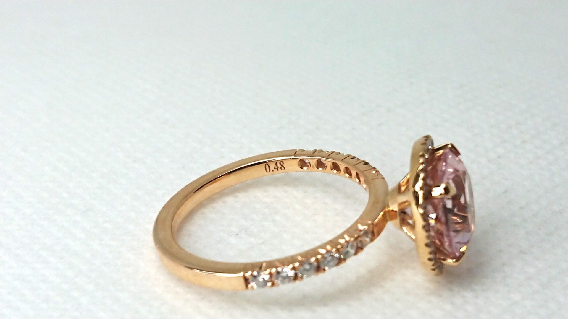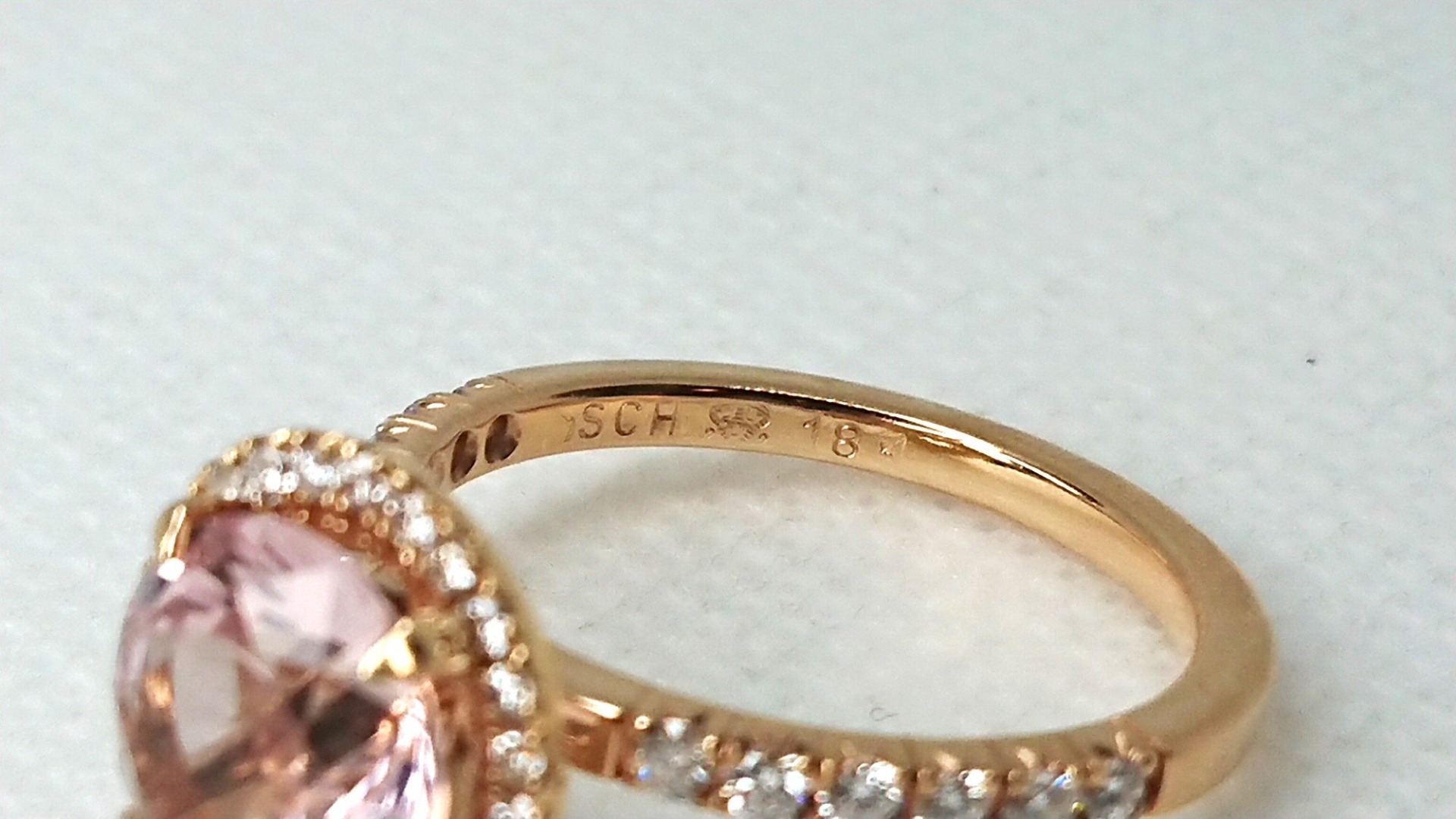 Vacker vintage Schalins diamant ring i äkta 18K rött guld design namn FAIRYTALE 10 Morganit med Briljantslipad Morganit sten 9,4mm ca 2,6ct samt 36 diamanter, 24x0.01/12x0.02, totalt om 0,48ct diamant, i mycket bra skick som ny, otroligt vacker design. Svensk guld från Schalins Ringar AB.